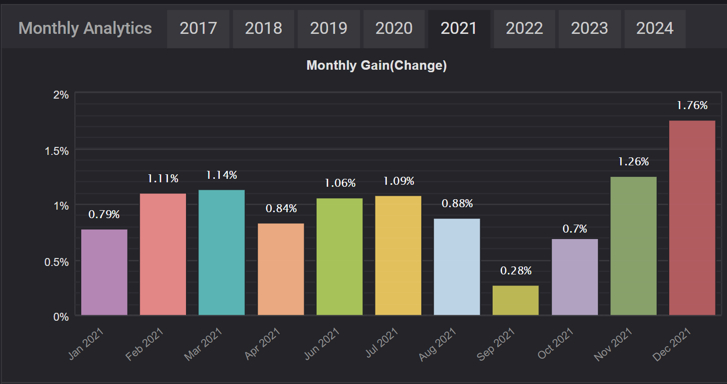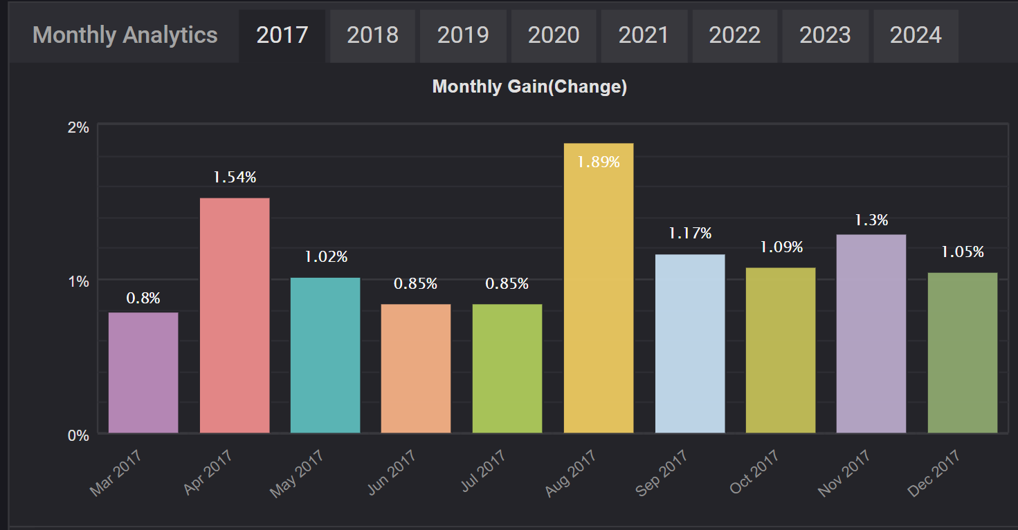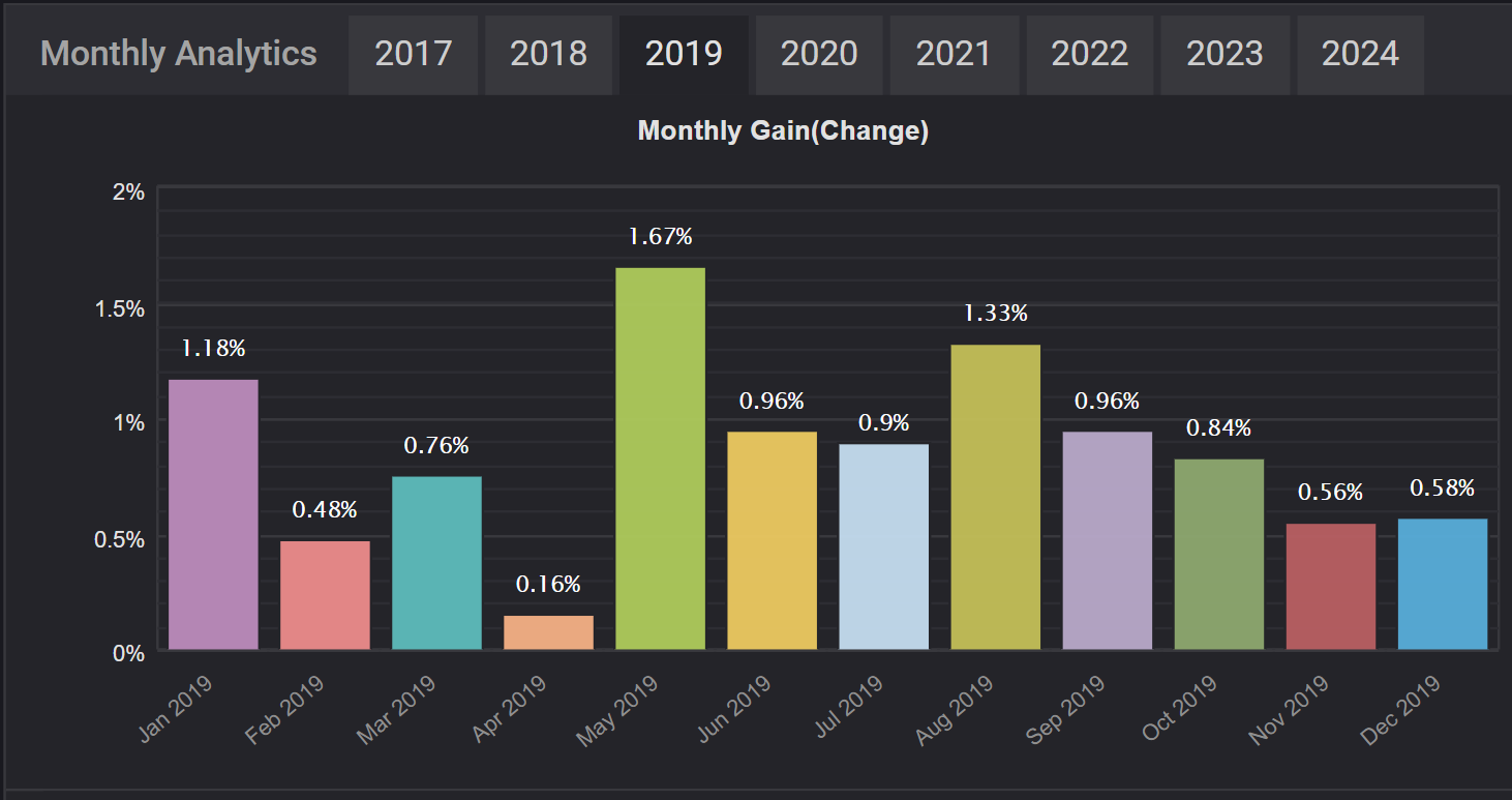 Take a look below at our past trading records, where you’ll find data on yearly and monthaly performance, as well as examples of how different risk profiles have affected results.