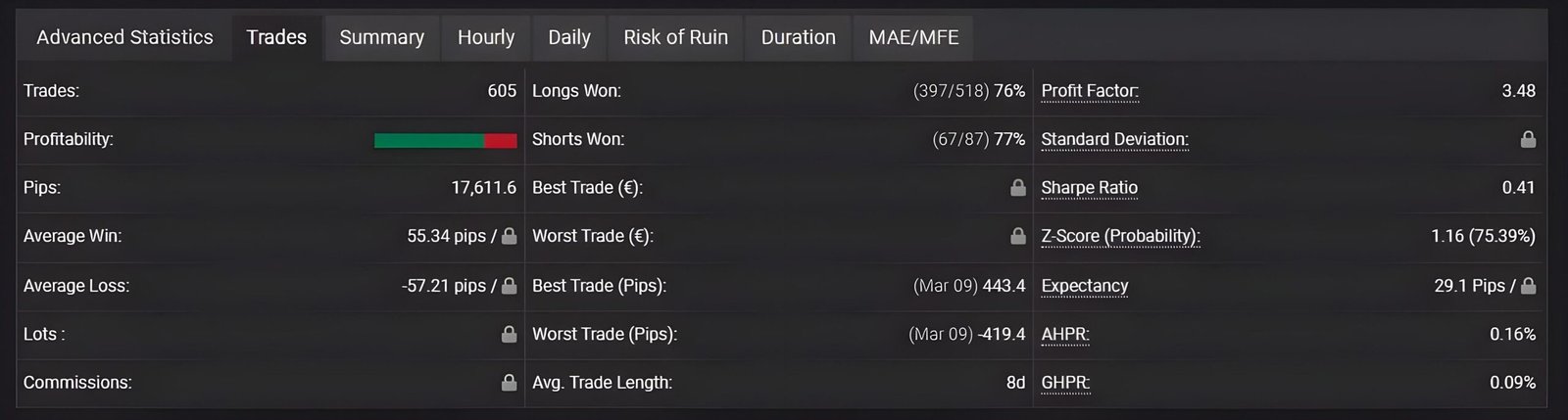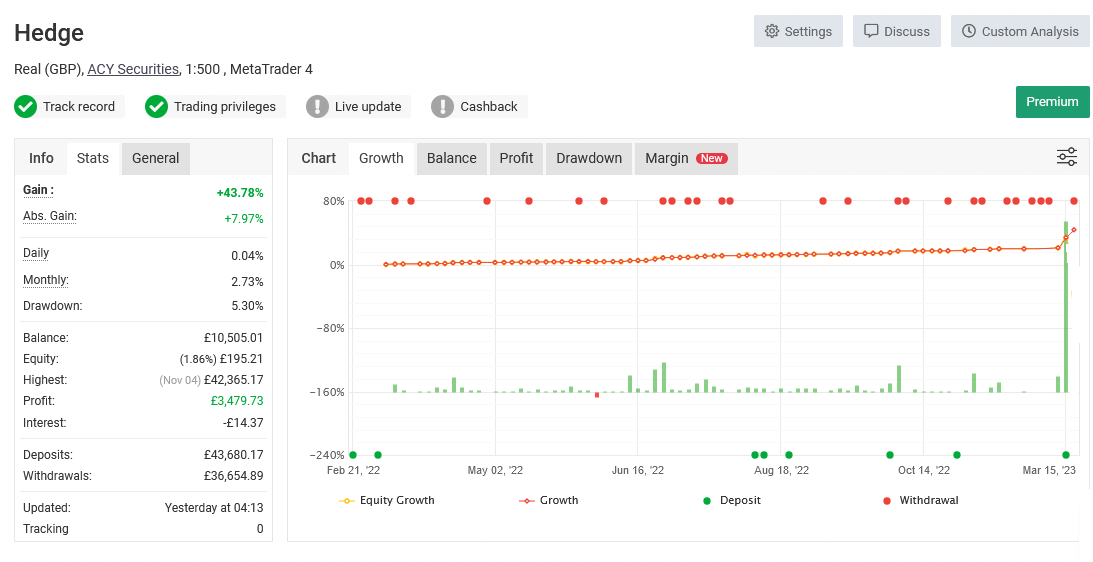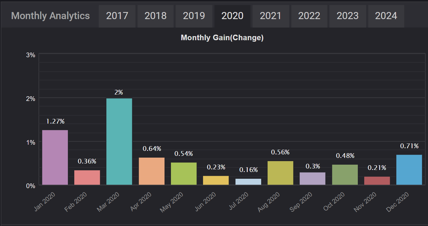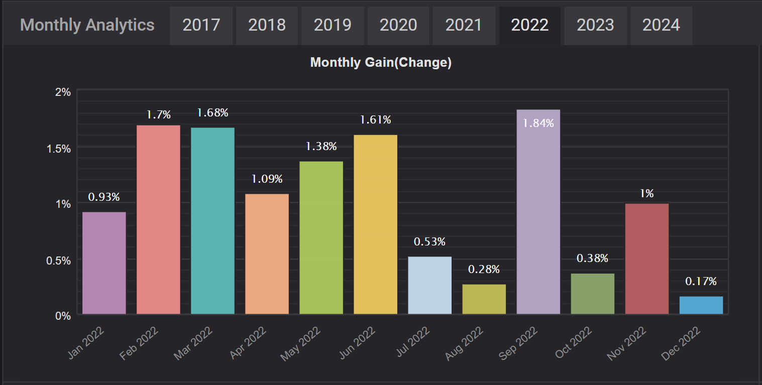 Take a look below at our past trading records, where you’ll find data on yearly and monthaly performance, as well as examples of how different risk profiles have affected results.