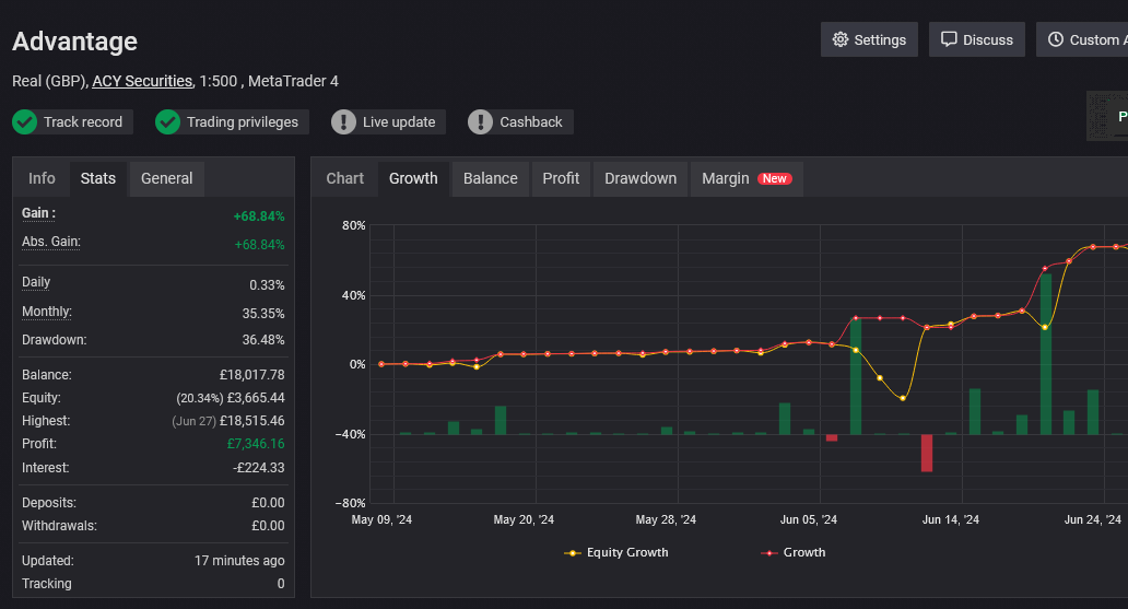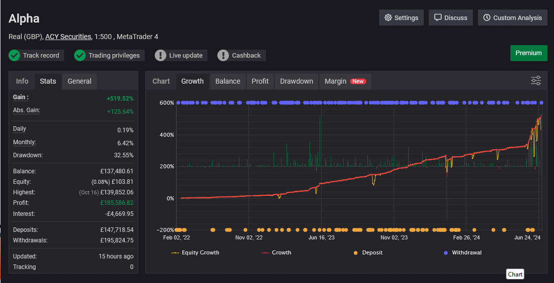 However, we understand that every client has different goals and risk tolerances and that majority would prefer bigger income. For those who prefer a higher return potential, we apply multipliers to your performance. This can increase annual returns to 20-40%, with maximum drawdowns around 20%, depending on your individual risk preferences and the tier you choose.